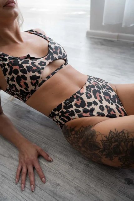 Góra od stroju pole dance z wycięciem pod biustem – panterka
