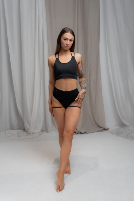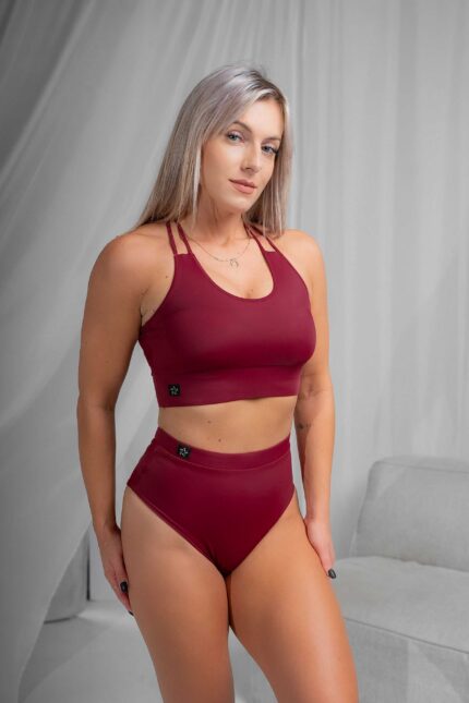 Komplet pole dance top z paskami figi pełne wiśniowy