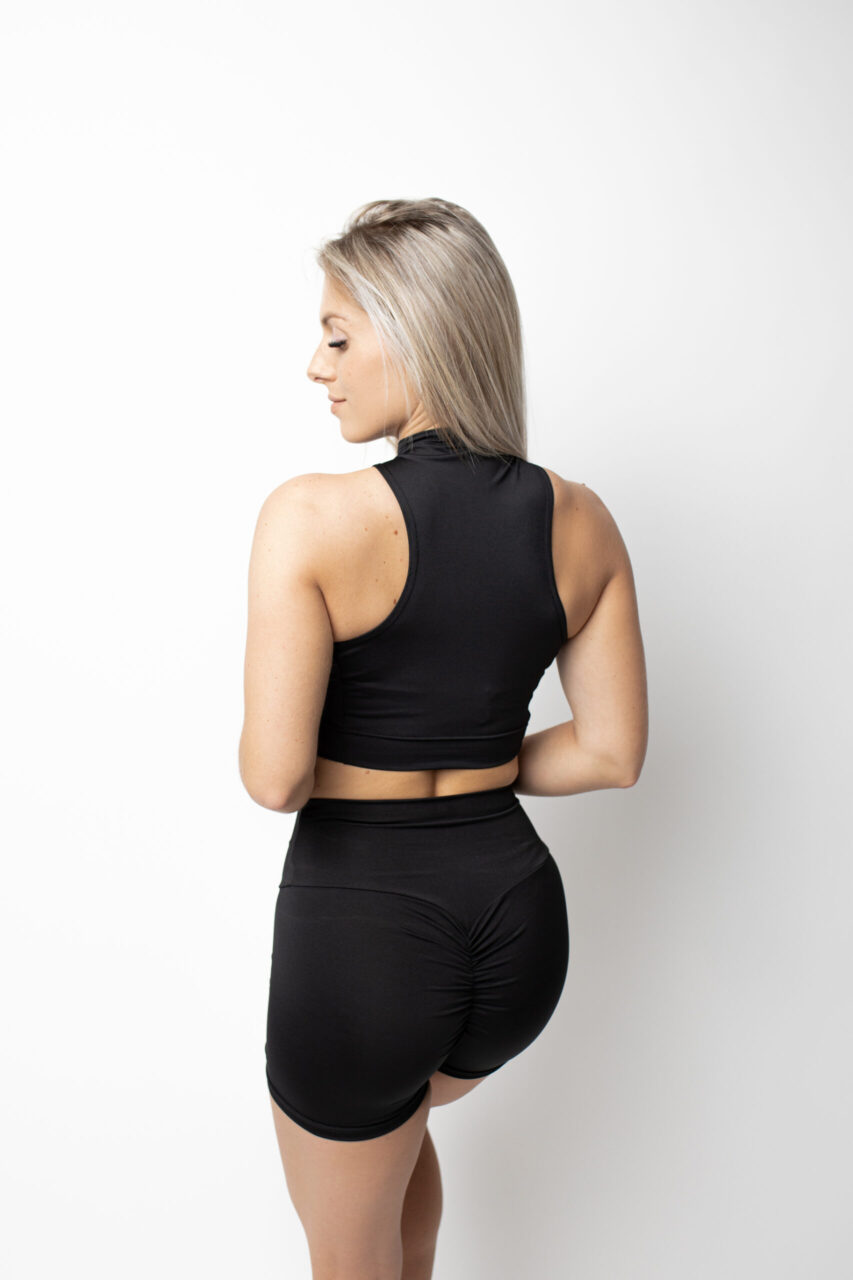 Crop Top High – black z Półgolfem to nie tylko odzież sportowa, ale także modny element garderoby. Sprawdza się w dynamice pole dance, podkreślając sylwetkę i zapewniając swobodę ruchów.