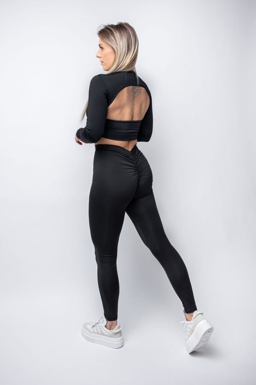 Eleganckie czarne legginsy High Ruff black to esencja uniwersalności. Stanowią doskonały wybór dla każdej kobiety, która pragnie łączyć funkcjonalność z modnym wyglądem.