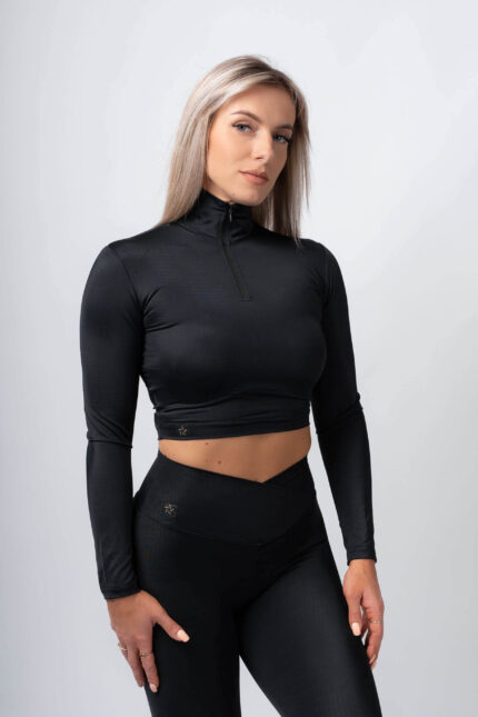 Nasz Top Outdoor – black, zaprojektowany z myślą o nowoczesnych i aktywnych kobietach, łączy w sobie seksowność i funkcjonalność. Długie rękawy i krótki krój czynią go zarówno fashion, jak i kobiecym, idealnym do różnorodnych stylizacji.
