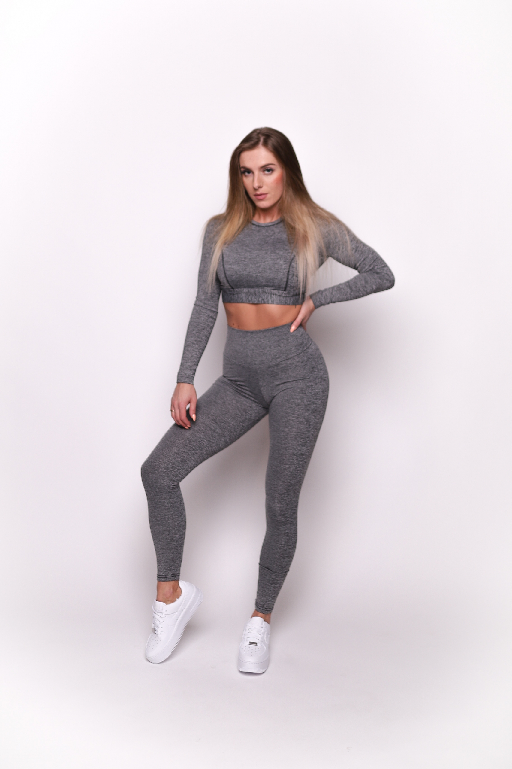 Model outdoor TOP w kolorze melanżowej szarości, doskonale podkreśla złotą opaleniznę. Szary look składający się z topu i pasujących do kompletu legginsów Melange Ruff to stonowana ale nie nudna stylizacja sportowa dedykowana wielbicielkom minimalizmu również w ubraniach sportowych. Połączenie Melange outdoor TOP i czarnych legginsów Melange Ruff tworzy ponadczasowy outfitt nie tylko na ćwiczenia.