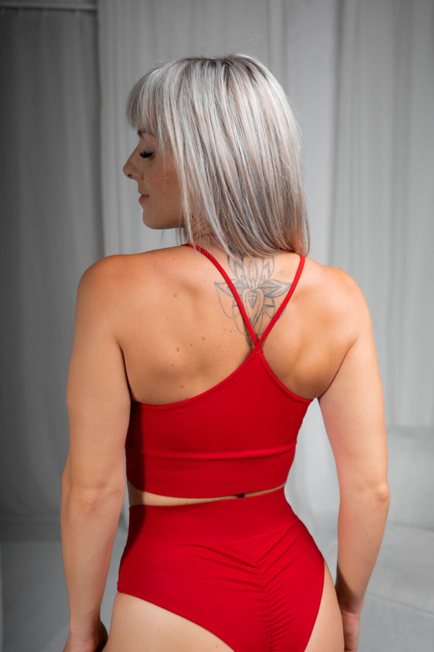 Prezentujemy “Top Pole Dance z Paskami czerwony” – stworzony z myślą o tancerkach pole dance. Ten elegancki i funkcjonalny top oferuje nie tylko doskonałe wsparcie biustu dzięki szerokiej gumie, ale również zachwyca unikalnym designem z cienkimi, krzyżowanymi paskami na plecach.