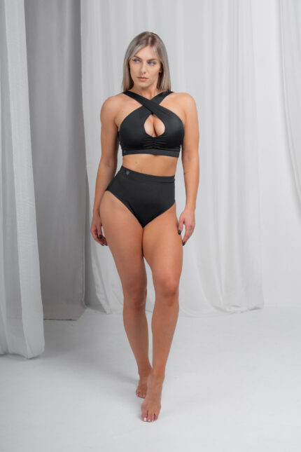 Komplet pole dance top z paskami i pełne figi czarny